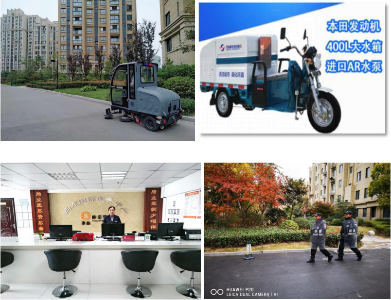 在日常的安全物业管理及环境管理方面,2017年朴素物业在尚东国际配置了自动化设备。有全自动洗地车、高压水枪冲洗车作业,保持社区环境干净整洁常态化;电动高级巡逻车、单人电动巡逻车、防暴盾牌、智能对讲,帅气制服配套等提供24小时安保系统服务。其中机械化清洁作业设备进入小区也是开创了灵璧县的先河。