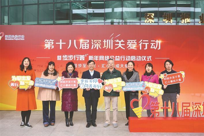 在第十八届深圳关爱行动启动仪式上,第六届“步步行善”新年网络公益行动同步启动。活动从启动之日起15天内,热心公益的市民群众可通过关爱行动线上捐步活动平台,打卡参与公益捐步,所捐步数将折算为善款,由爱心企业出资定向捐给在公益平台“步步行善”专页上展示的公益项目。