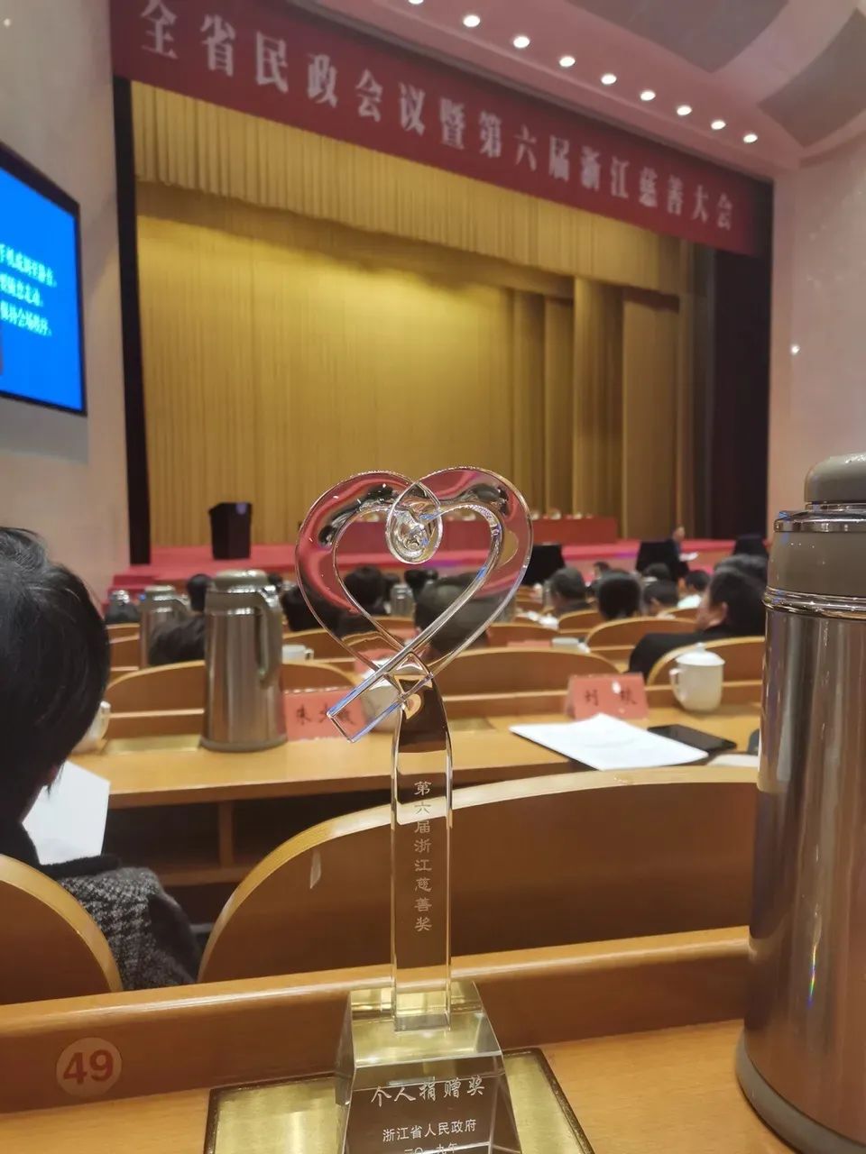 “金粟缘人”的爱心捐赠也给他赢得了很多荣誉,2016年获评海盐慈善影响人物,2018年获得嘉兴市第五届慈善奖,2019年荣获浙江慈善奖。不过,这些颁奖现场,“金粟缘人”都没有现身。俞明华的电脑里一直保存着两张照片:颁奖典礼上无人认领的奖杯与贴有“金粟缘人”标签的空座位。