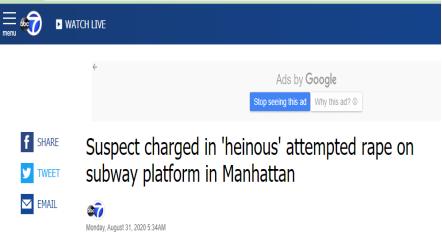 ABC:嫌犯被控在曼哈顿地铁站台上进行“令人发指”的强奸未遂行为
