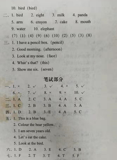 上面是三年级英语上册期末考试卷,学生可以根据自己实际情况,有针对性和选择性地去做一做,找出自己的不足之处,然后好好总结一下相关题目的考查点有哪些?同时预祝每一位学生都可以在寒假期末考试中取得一个理想的成绩。