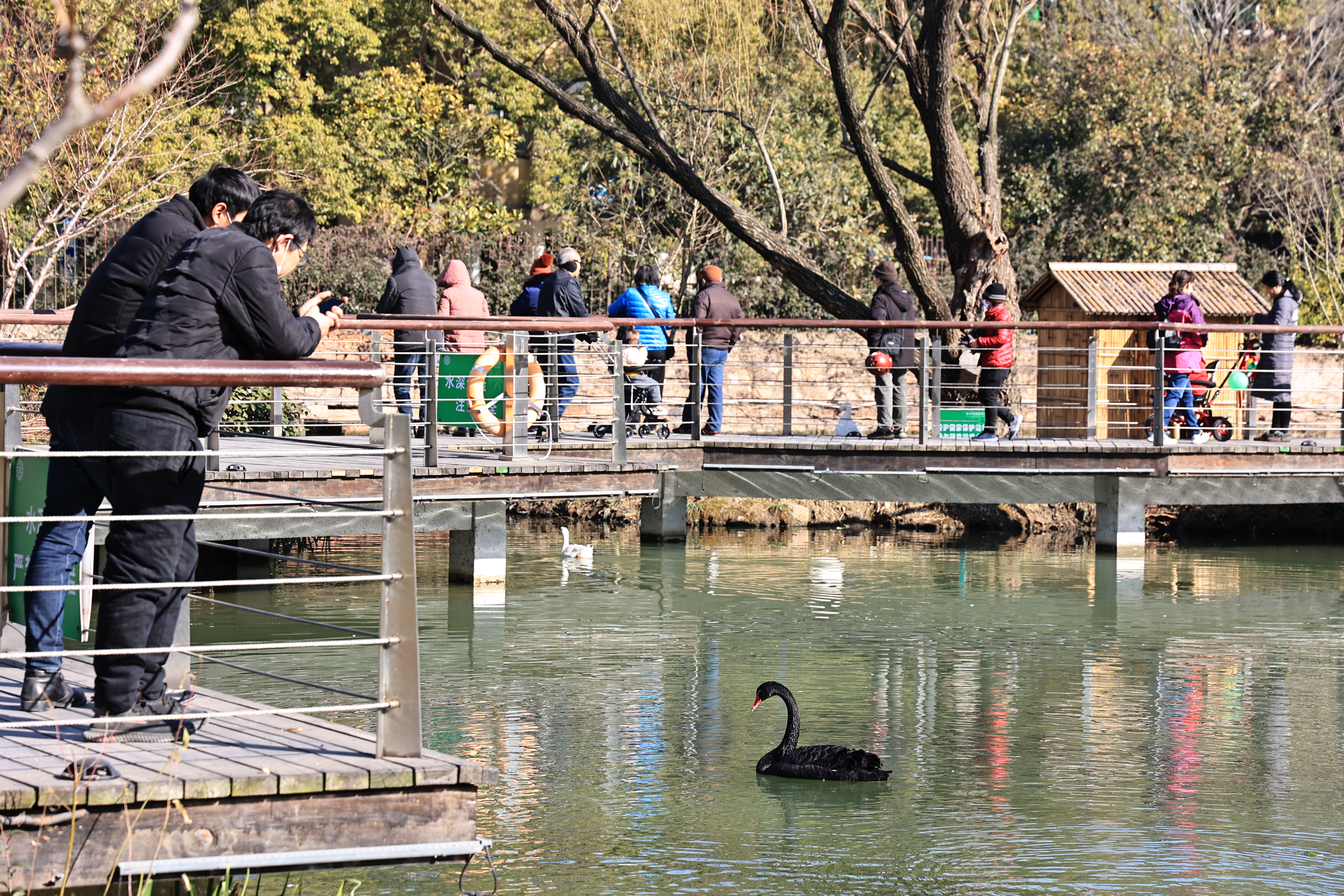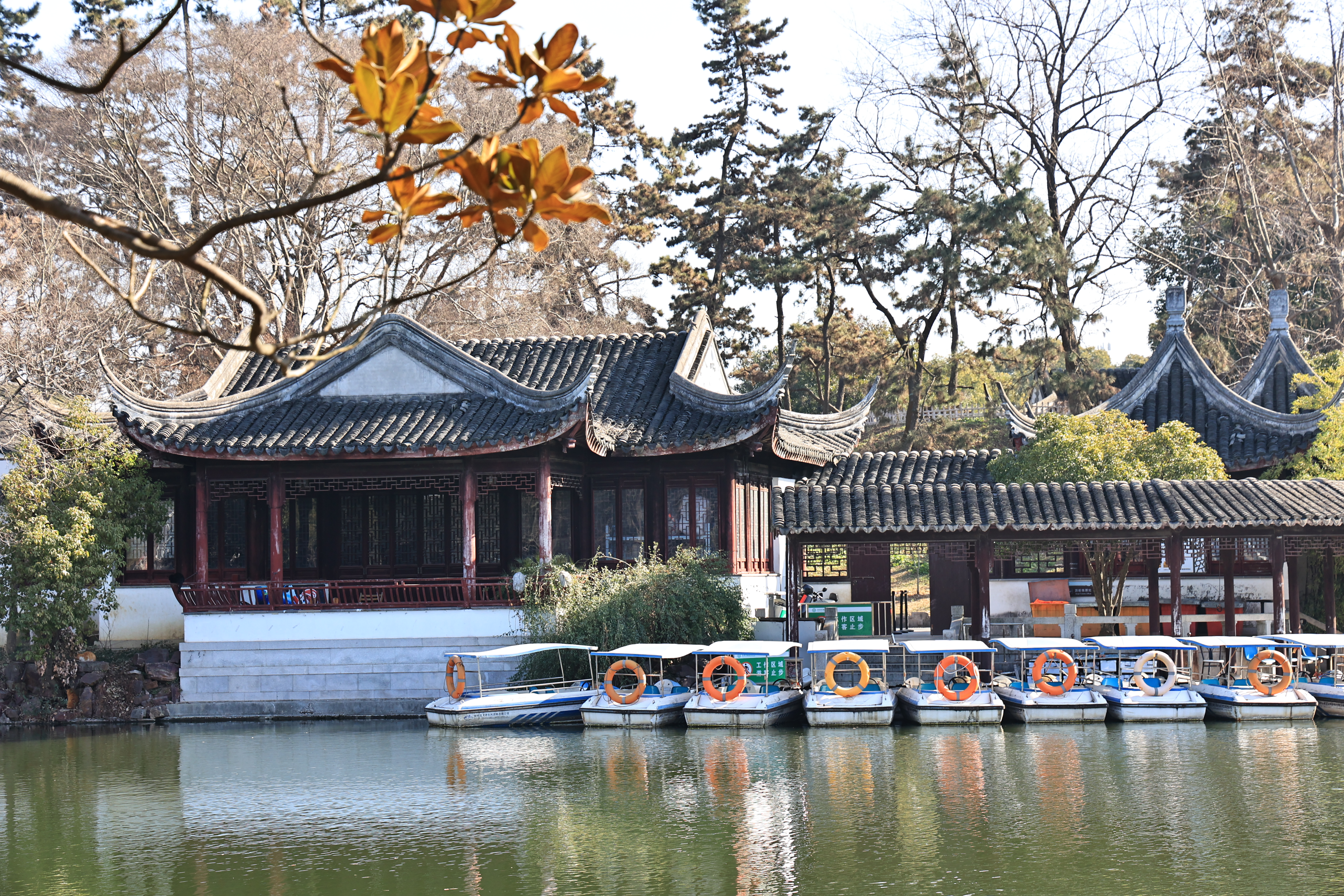 让我意外的是,东园里竟然有片天鹅湖,摇曳着十几只黑天鹅。苏州能看天鹅的地方不多,东园是市区内的唯一,这些黑天鹅常年居住于此,像是东园的主人,迎接着来往游客。