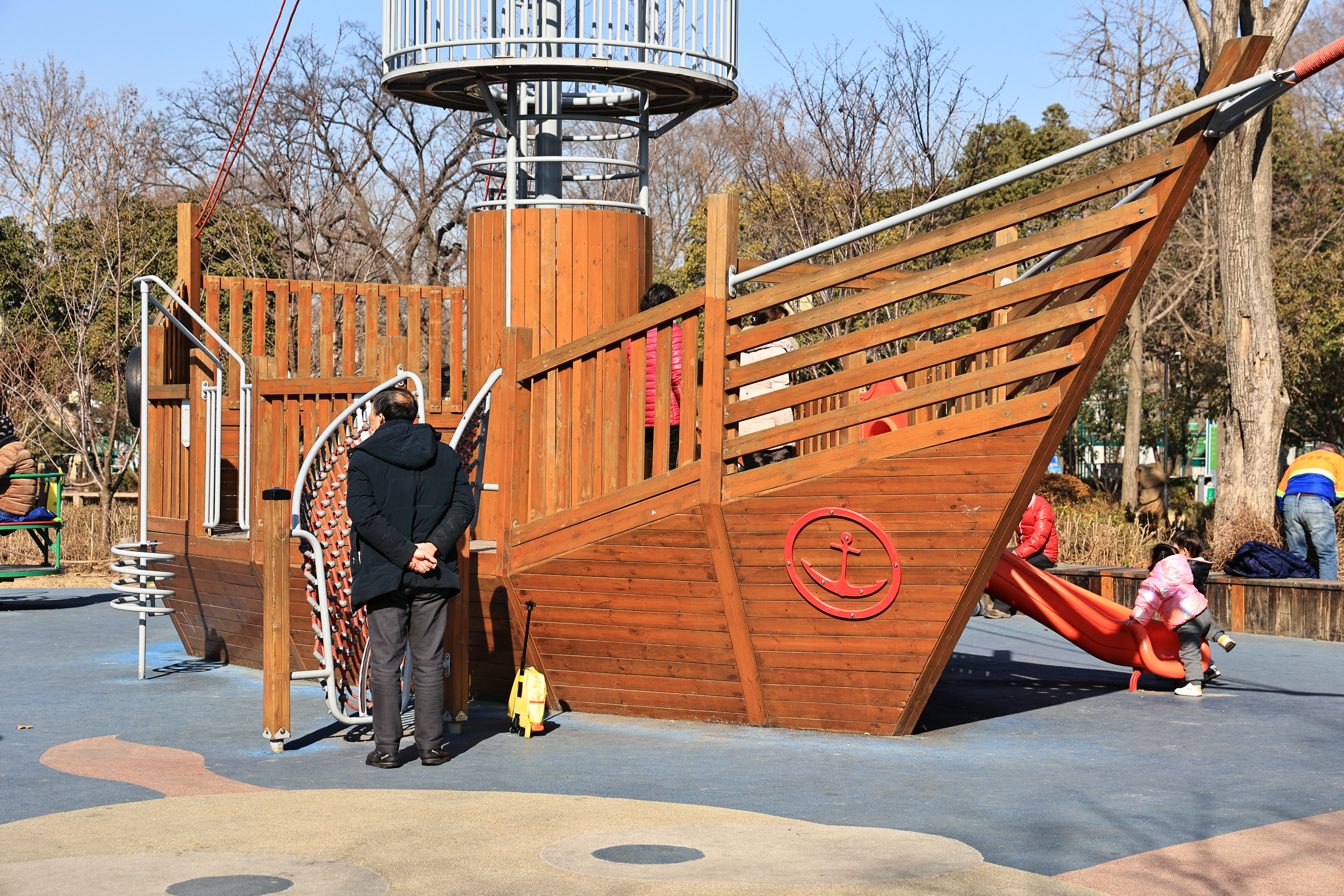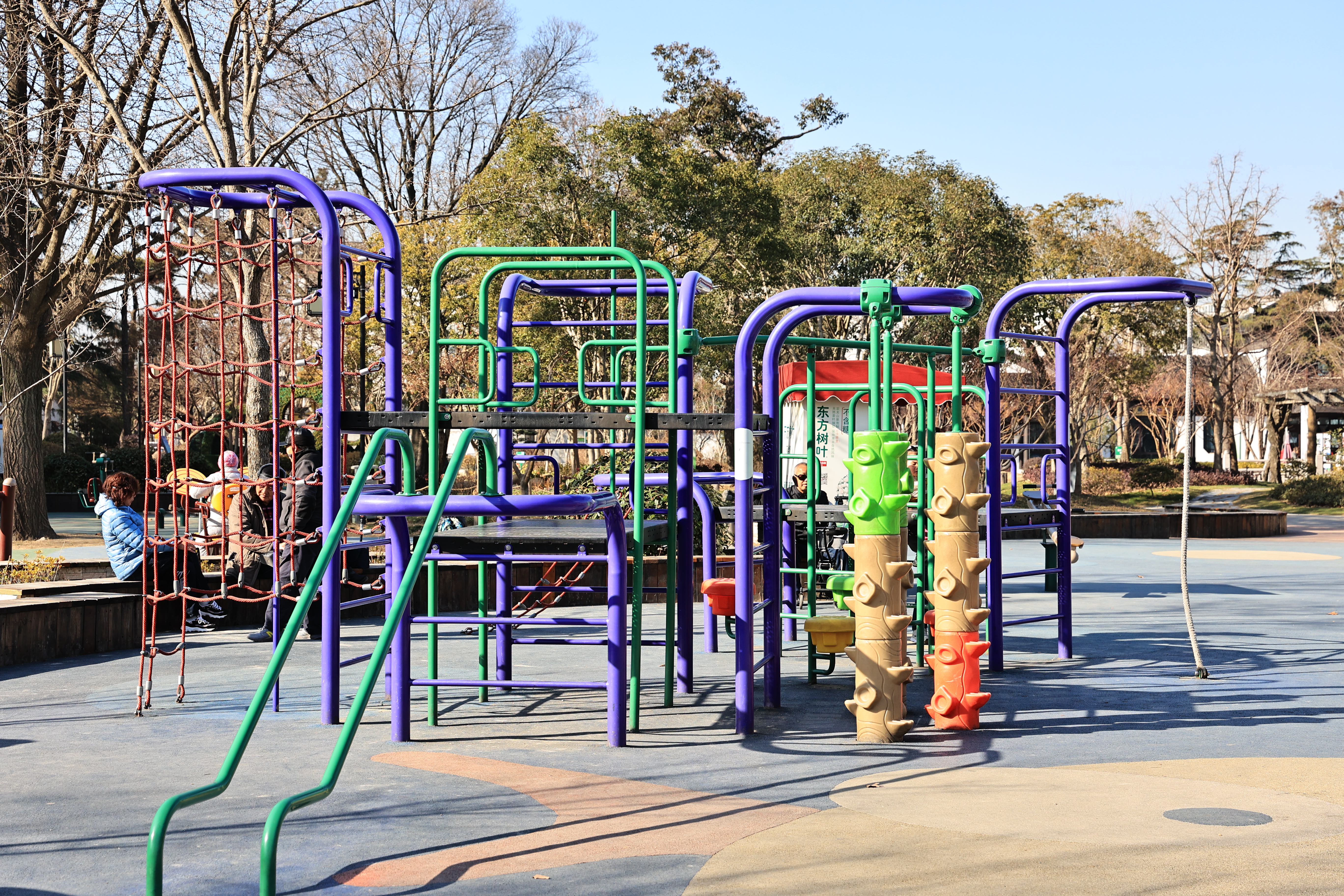 虽然没了动物园,但东园人气依旧在,来来往往游人不断。中间有块区域,摆放着儿童游玩设施,有旋转滑梯,攀爬梯等,保护措施完善,都是免费玩的,适合家长带小朋友前来。