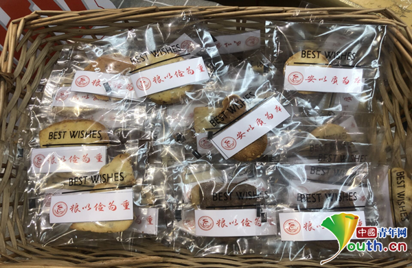 图为食品学院为新生准备的饼干。中国青年网通讯员 胡晓彤 摄