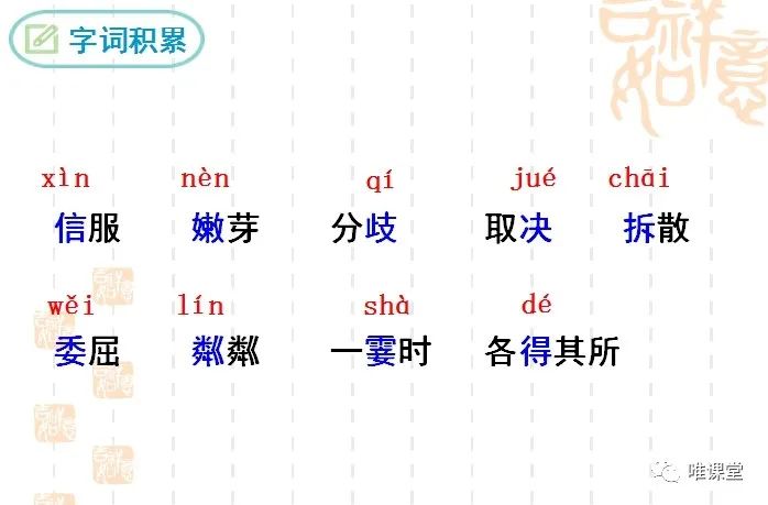 4.这南方的初春的田野!大块儿小块儿的新绿随意地铺着,有的浓,有的淡;树枝上的嫩芽儿也密了;田里的冬水也咕咕地起着水泡儿……这一切都使人想着一样东西——生命。