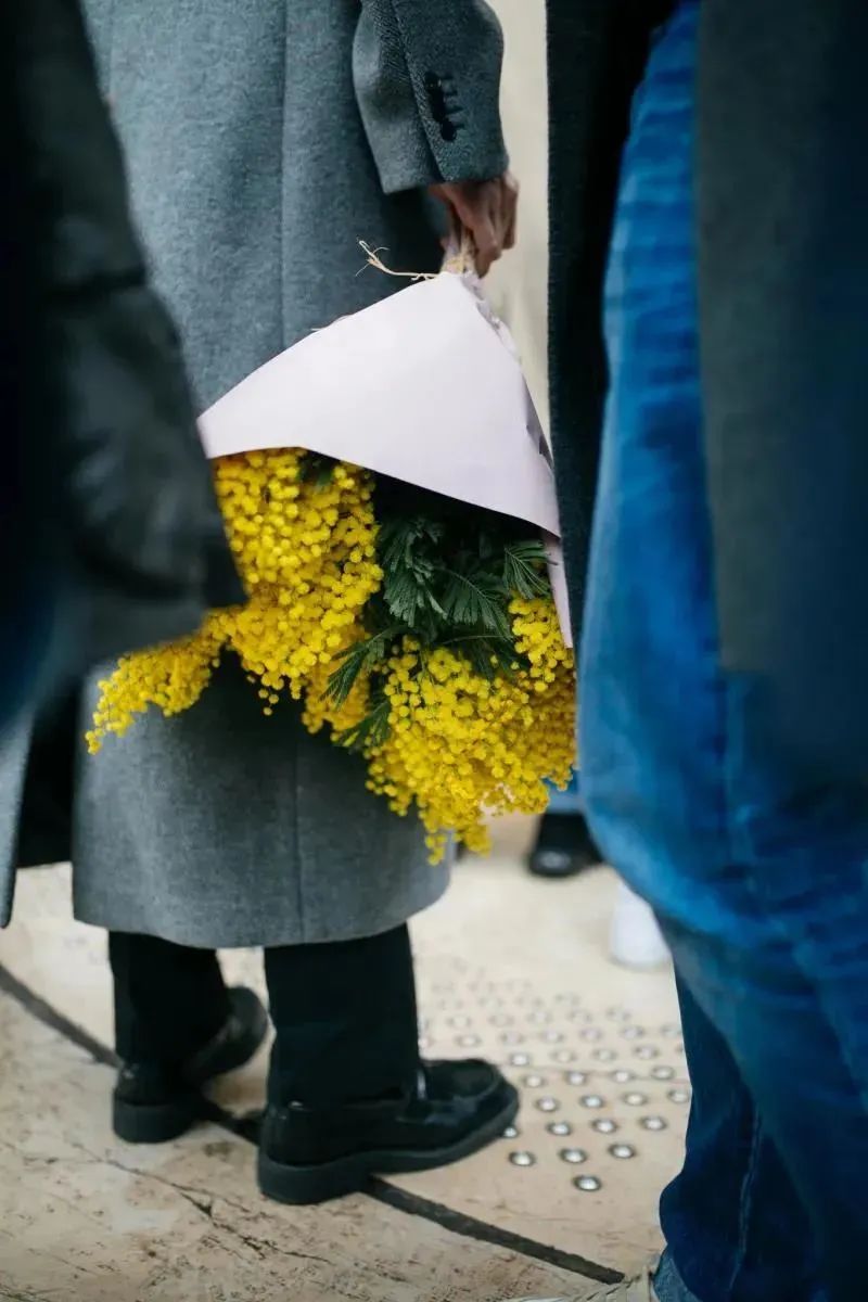 一只包包,一束鲜花、一件衬衫,就像一束光,点亮阴霾,点亮冬日的无趣,为不安的内心带来温暖,在一片灰调的氛围里,缓解了画面的单一,雅痞率性与慵懒清甜并存的风格瞬间便能信手拈来。