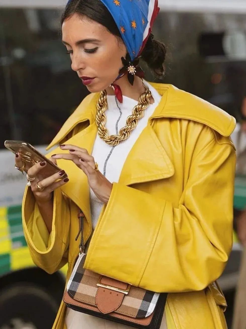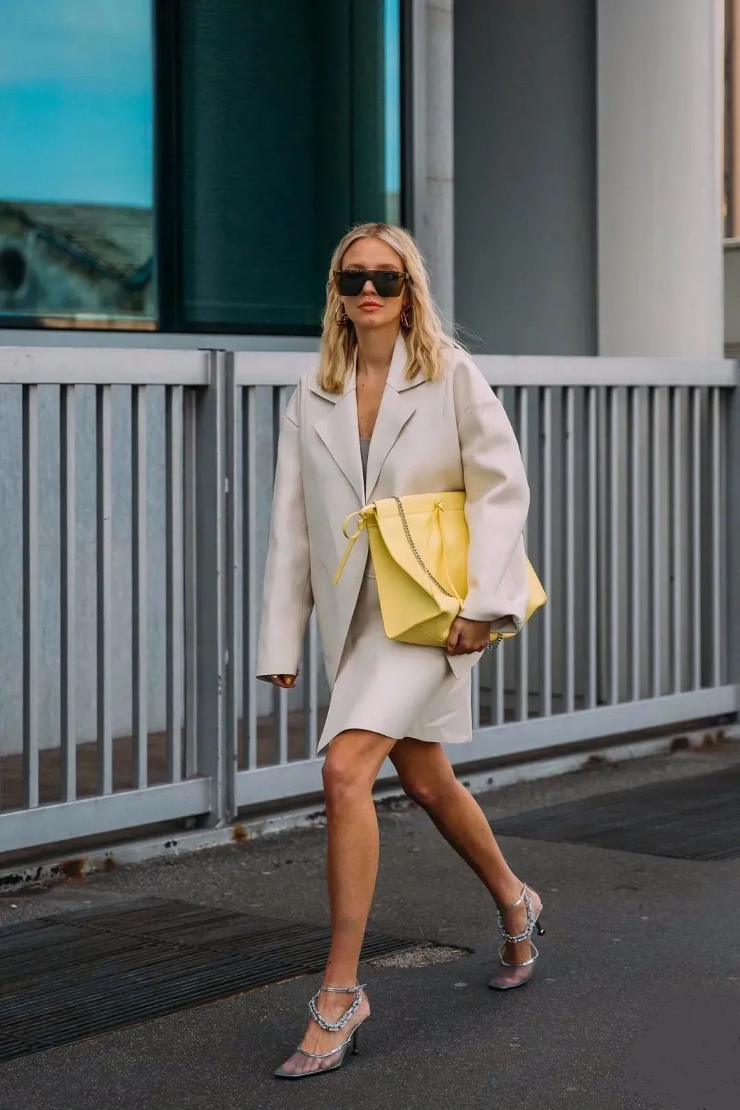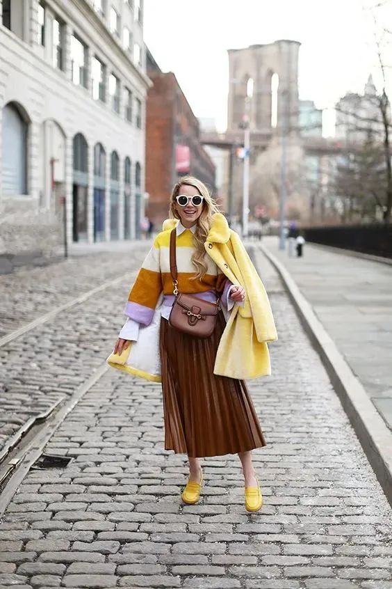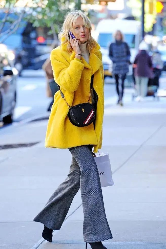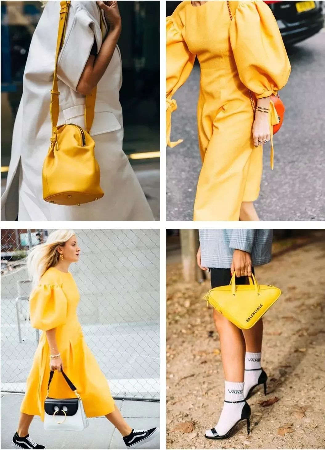 想要不太出挑则可以选择鞋履、帽子等小配饰,用明艳的黄色给沉闷的世界带来一丝暖意和趣味!包包也是不会出错的保险单品,耀眼且好驾驭,小小一只便能惊艳秋冬街头,既吸睛又不会过于花哨。