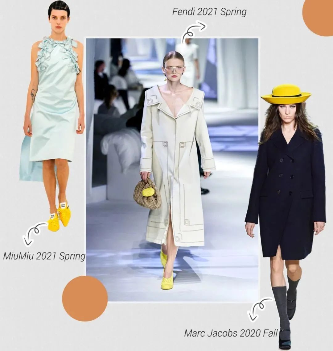 把目光投向2021春夏秀场,黄色的曝光率很高,已经成为各大品牌的宠儿。