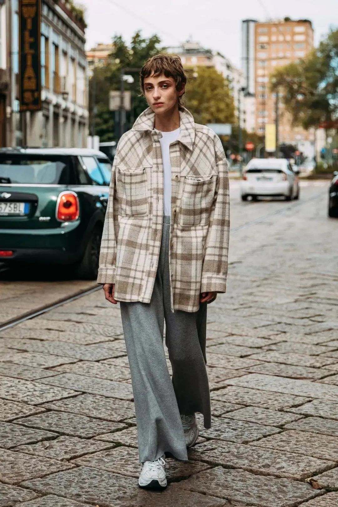 除了“上灰下黄”,“外灰内黄”或者“外黄内灰”的叠穿也能打造别致的层次感,色彩上灰黄呼应,活泼与稳重兼备,不会显得过于沉闷无趣。