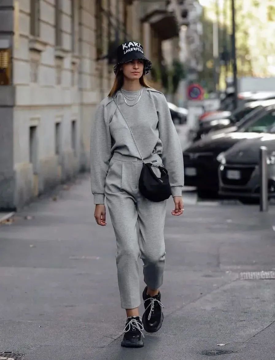 日常中休闲随性的针织阔腿裤与极致灰最是般配,灰色调既能降低针织材质带来的臃肿显胖,秋冬随意混搭双运动鞋,便能异常出彩~
