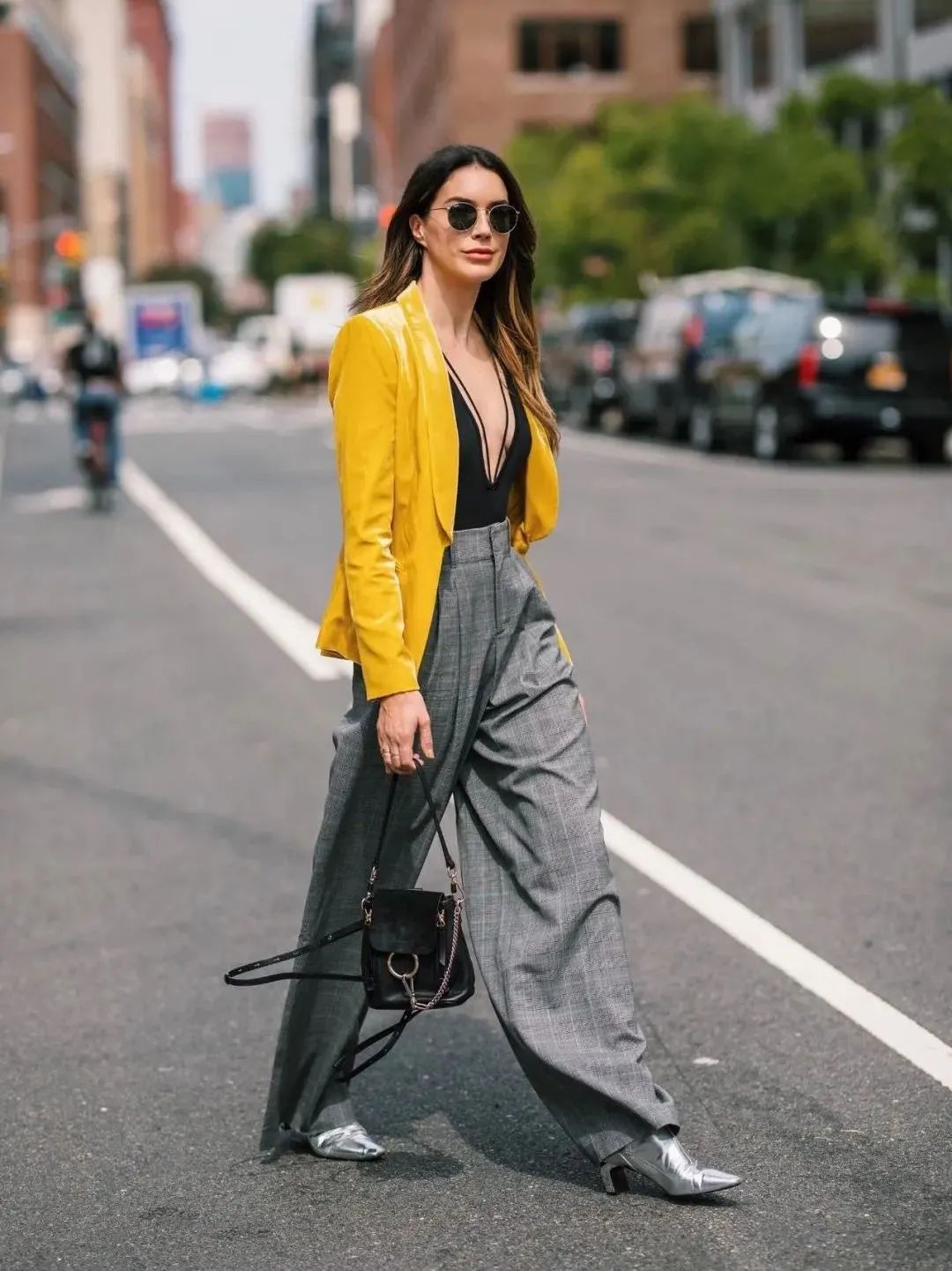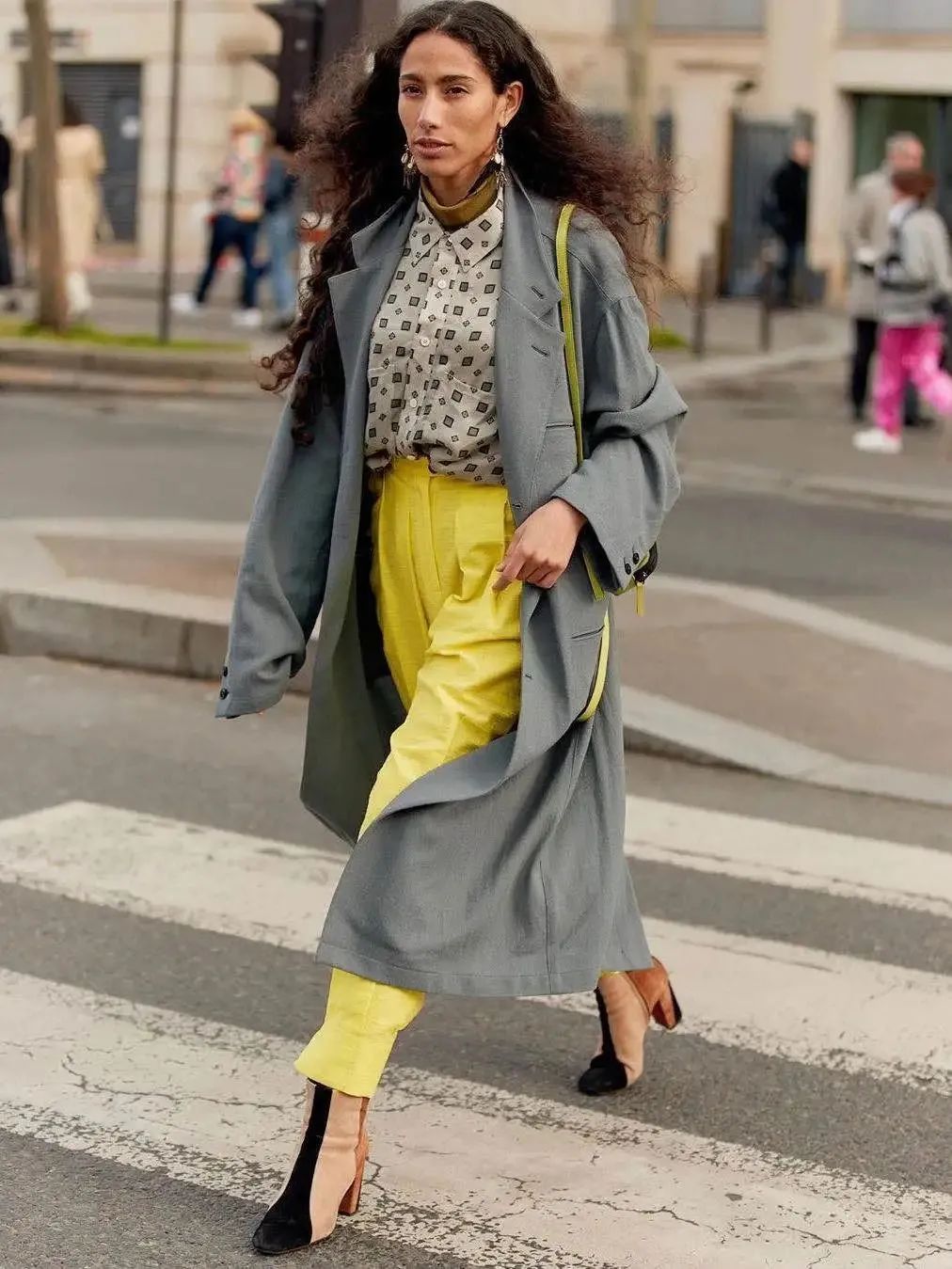 除了各自单穿很出彩,极致灰与明亮黄的叠穿也很可!既轻快明朗,又庄重优雅,实穿性很高。