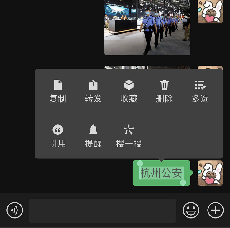 长按对话框中“杭州公安”后,