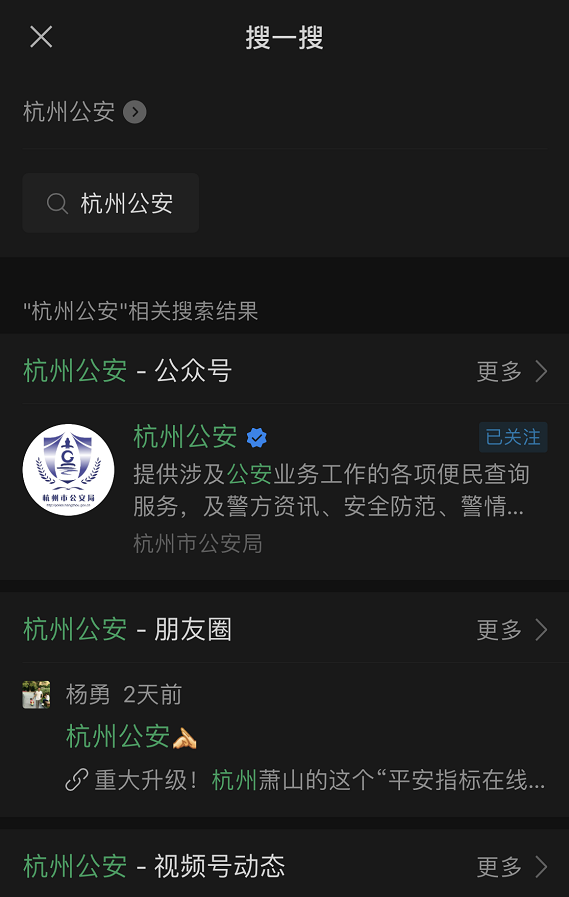 就会出现“杭州公安”的相关内容。