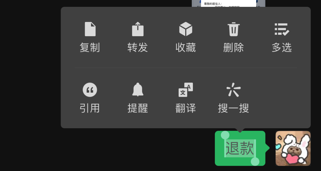 微信更新到最新版本后,在微信对话过程中,如果遇到想要了解的内容,可以长按聊天气泡,选择“搜一搜”,对文字进行搜索。