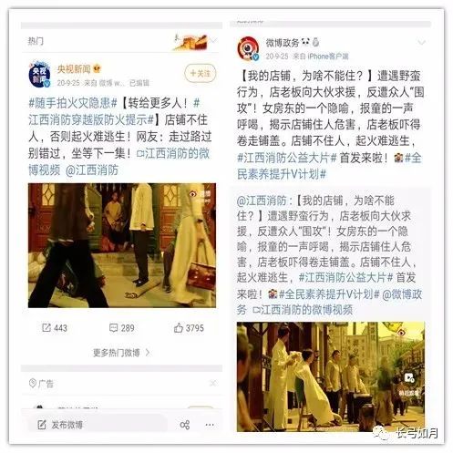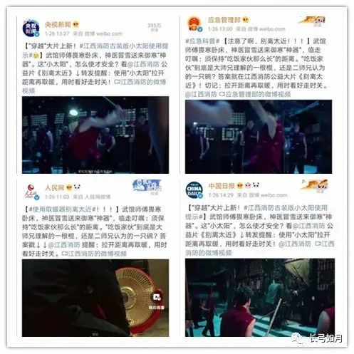 8部广告片,从三国、唐朝到民国、现代,时间跨度广;有沙场征战、有宫廷智斗、有家长里短,场景转换大;结局反转、设置悬念、幽默诙谐,表现方式多,但无一例外是通过艺术形式影响受众、浸润受众、打动受众,从而让受众记住广告片所阐述的消防知识。