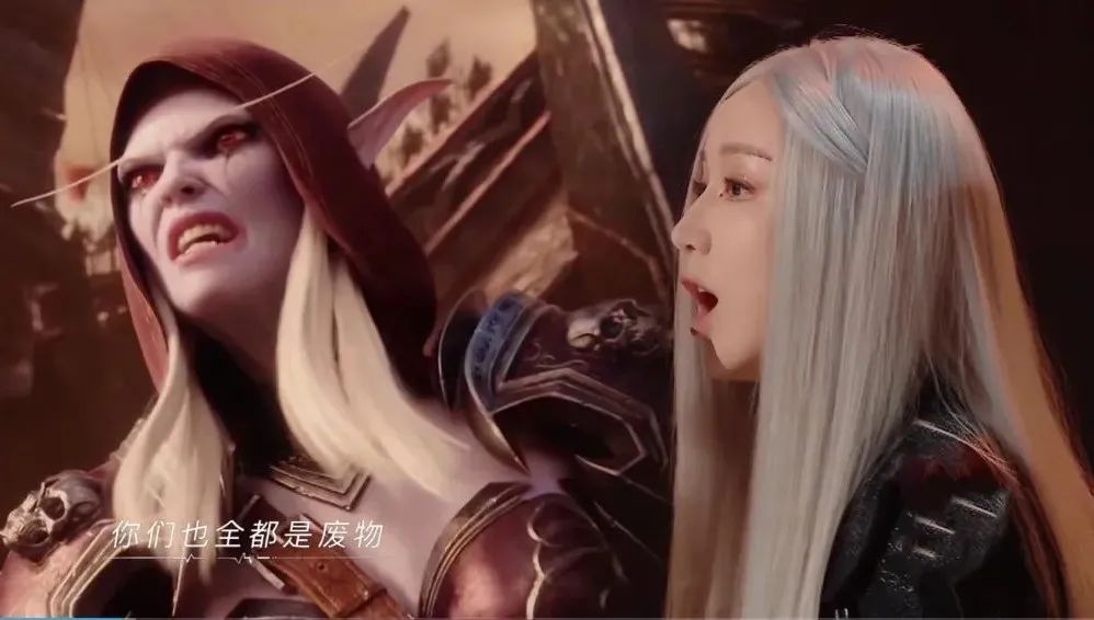 其中,为诠释好黑暗女王希尔瓦娜斯,娄艺潇邪魅的妆容搭配一头银灰色长发、一身黑色长裙,甚至“变成”了角色本人。