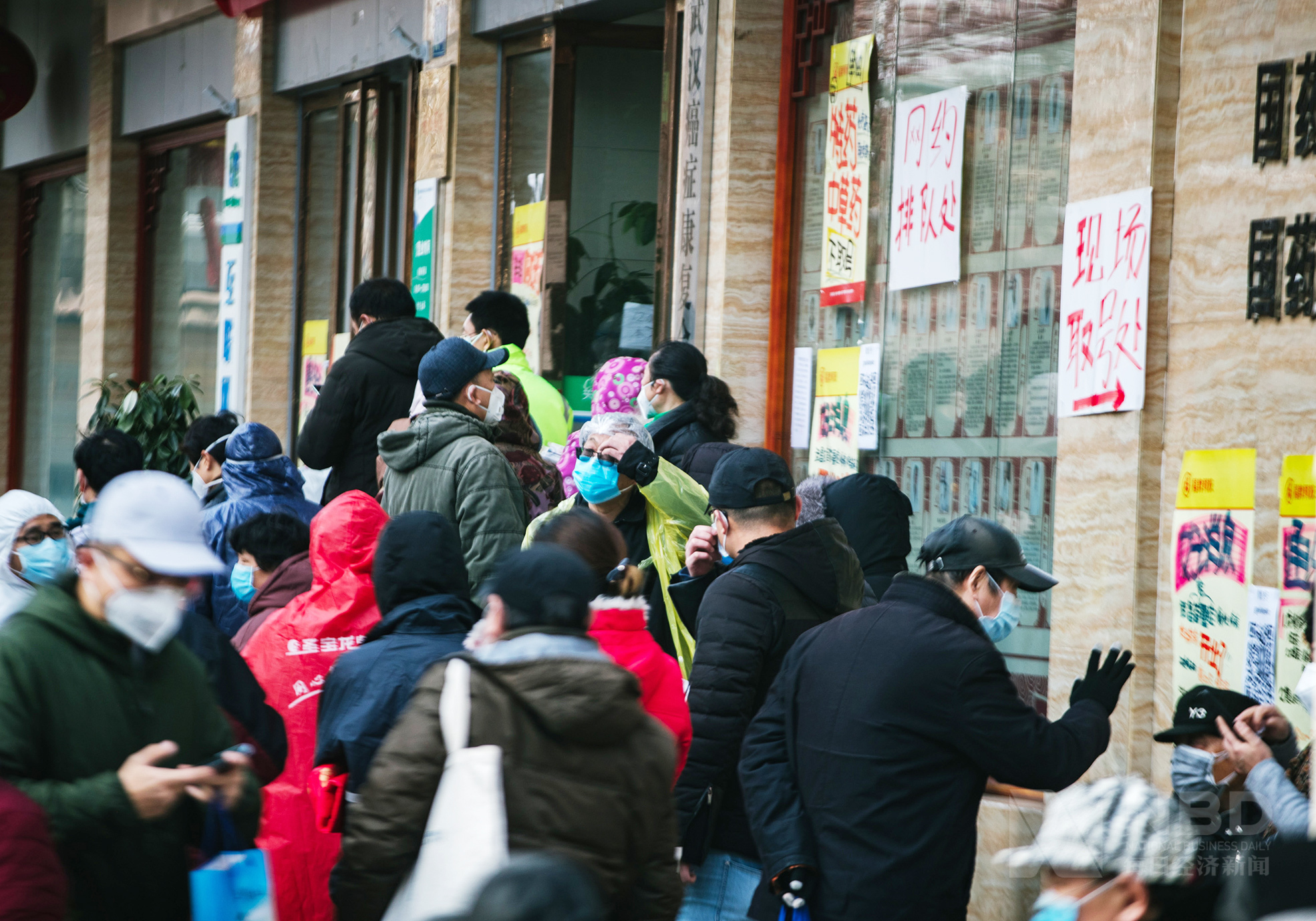 2020年2月17日,武汉,汉口大药房排队买药的市民。