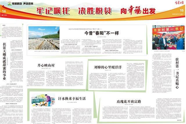 牢记嘱托,决胜脱贫,向幸福出发。近日,全省党媒派出骨干记者、编辑深入基层,组成多个采访组,全方位、多角度地发掘、记录各市州干部在脱贫攻坚工作中的动人事迹、感人精神和喜人成果。为推动党媒联动平台合作走向深入,本报推出特刊,与读者一同见证我省驻村第一书记的奉献足迹,以及党员、干部、群众同心协力,积极投身脱贫攻坚工作的感人画卷。