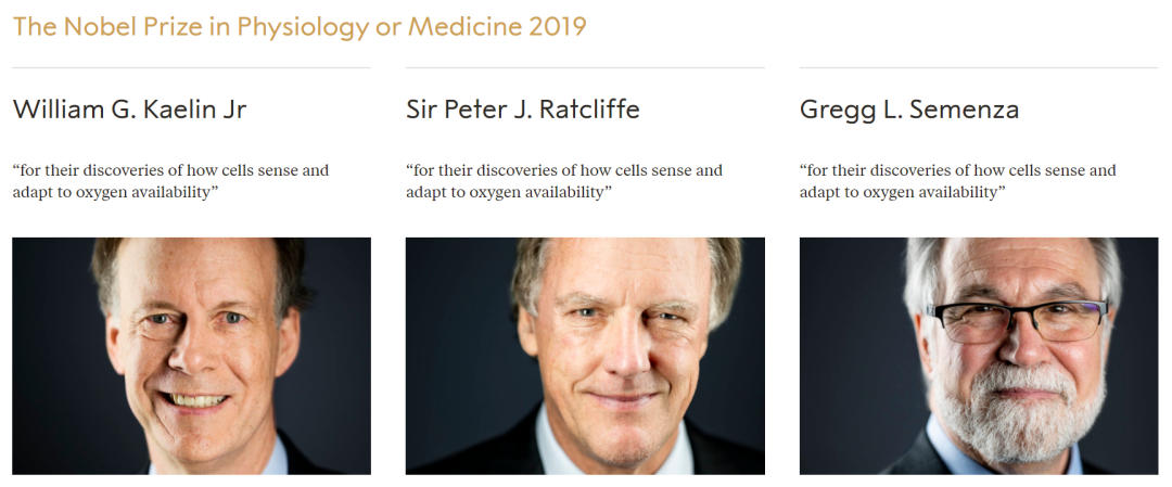 一年前的2019年10月7日,2019年诺贝尔生理学或医学奖公布,哈佛医学院的威廉·凯林( William G. Kaelin, Jr.),牛津大学的彼得·拉特克利夫( Peter J. Ratcliffe)以及约翰·霍普金斯大学医学院的格雷格·塞门扎(Gregg L. Semenza)三人,因“在理解细胞感知和适应氧气变化机制中的贡献”而获奖。