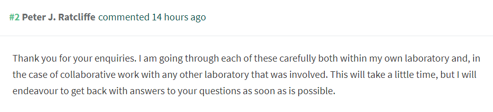 然而,仅仅几天之后,与格雷格·塞门扎一起获奖的彼得·拉特克利夫( Peter J. Ratcliffe)也被人在Pubpeer指出存在论文图片问题。