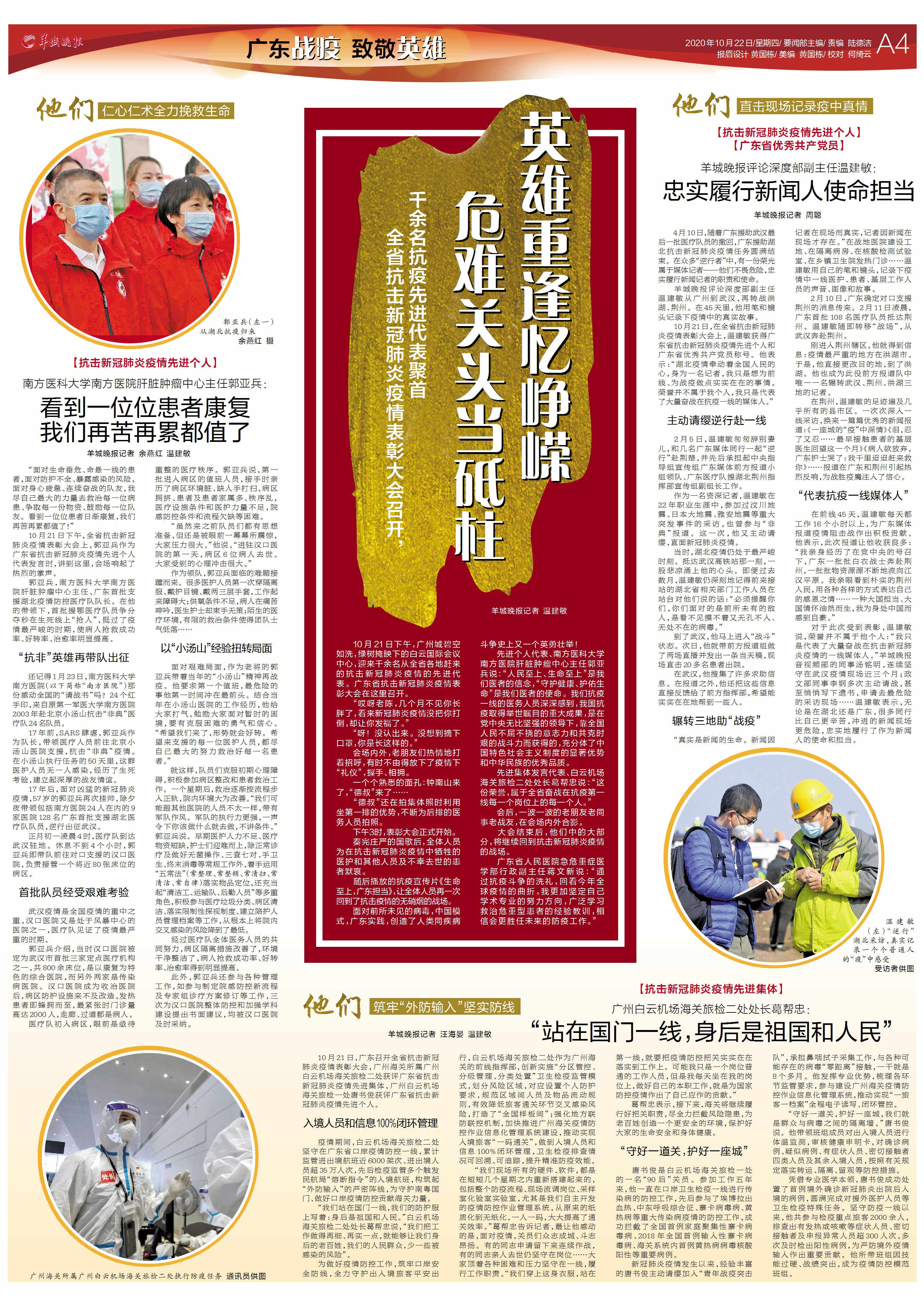 10月21日下午,广州城碧空如洗,绿树掩映下的白云国际会议中心,迎来千余名从全省各地赶来的抗击新冠肺炎疫情的先进代表。广东省抗击新冠肺炎疫情表彰大会在这里召开。