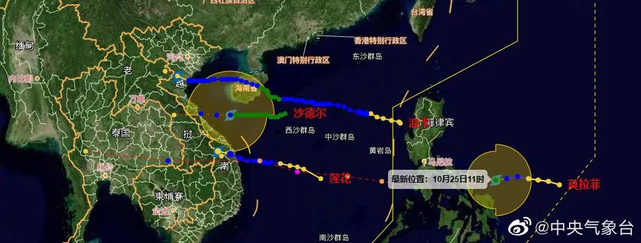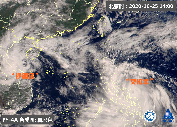 △“沙德尔”强度逐渐减弱,趋向越南沿海;“莫拉菲”中心结构仍在不断整合中,云系范围广阔。图片来源:国家卫星气象中心