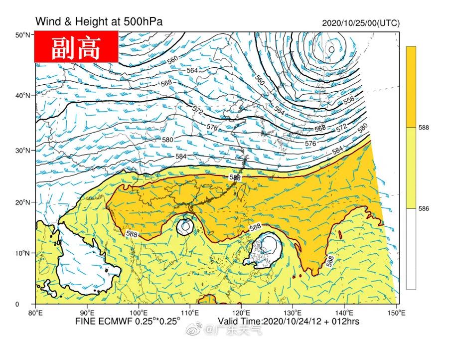目前副热带高压西伸明显,导致热带系统难以突破深厚的副热带高压向北行,所以,受其外围引导气流影响,台风西行增多,多影响南海及华南地区。