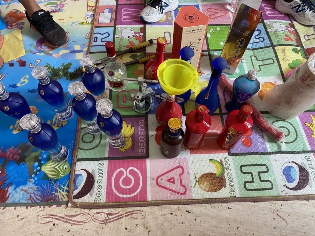 据犯罪嫌疑人刘某交代,因为没有钱,其便在网上学会了调制假酒的技术,自2019年10月开始在永宁村4队一处民房内根据自己学到的“土方子”调制勾兑各种品牌白酒。