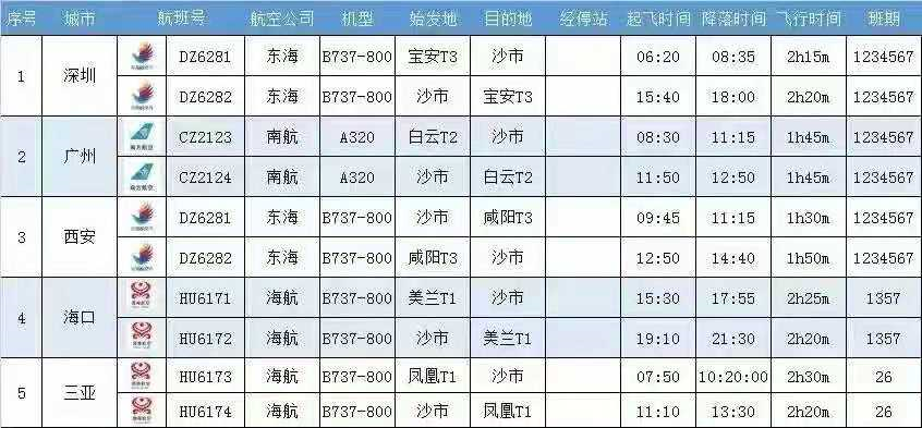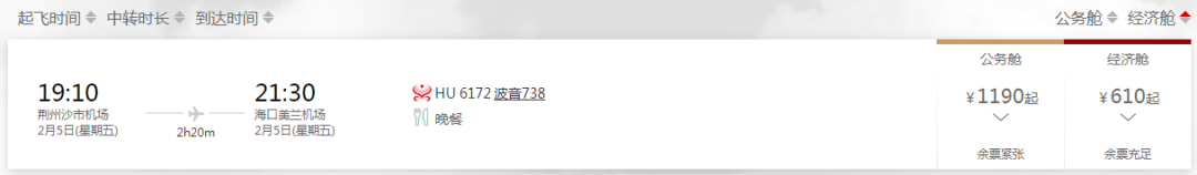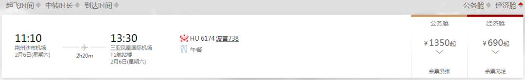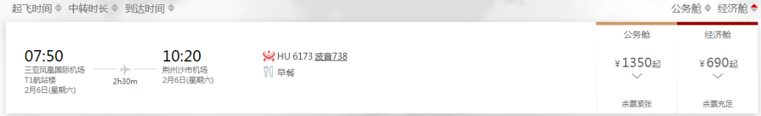 2月6日,荆州至三亚航班