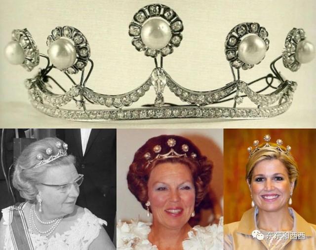 星星王冠从前长这样,是一顶珍珠王冠,从爱玛王后的女儿威廉敏娜女王,到朱莉安娜女王,再传到贝娅特丽克丝三代女王,现在的马克西玛王后都戴过↓↓