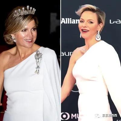 马王后1米8,人高马大,戴古董珍珠王冠配白色Valentino礼服,隔空撞衫摩纳哥王妃夏琳,这两位衣品和珠宝都很壕↓↓