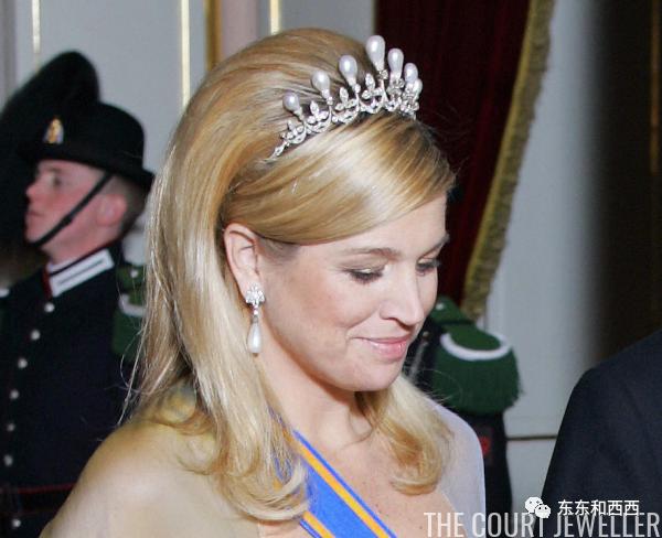 1900年左右,珠宝商为时任女王威廉敏娜打造珍珠王冠。现在传到现马克西玛手里,配套珍珠耳环也很大,造型与珍珠泪有点像↓↓