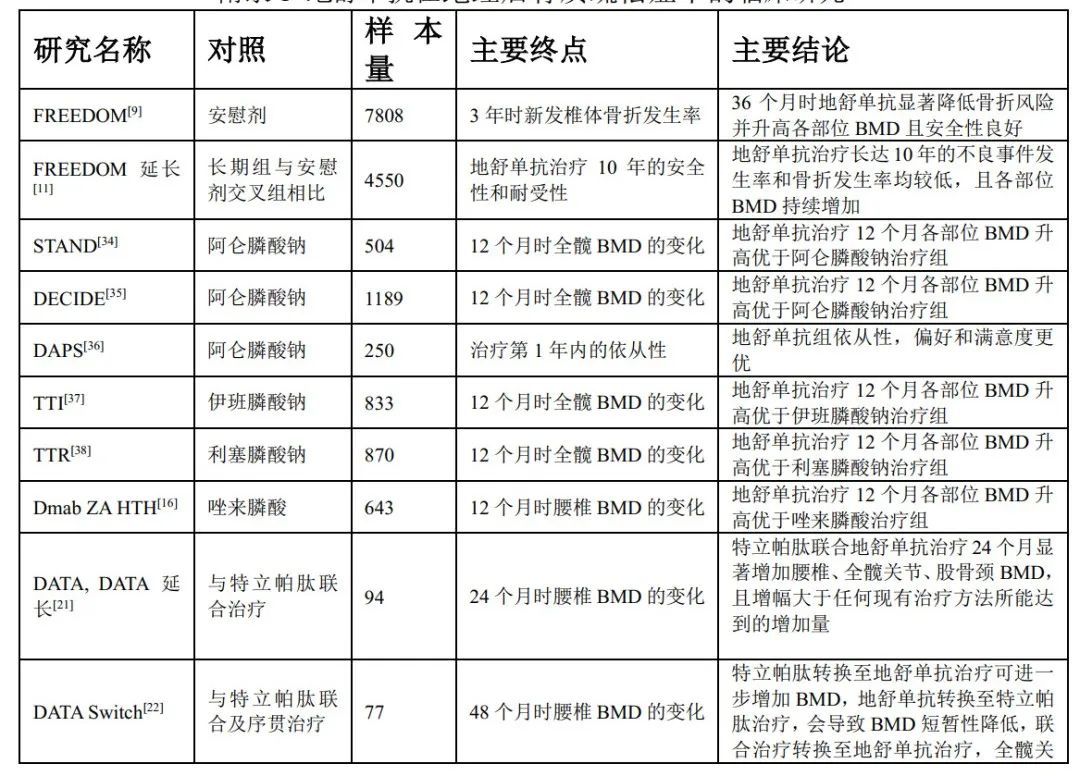 表1 地舒单抗在绝经后骨质疏松症中的临床研究