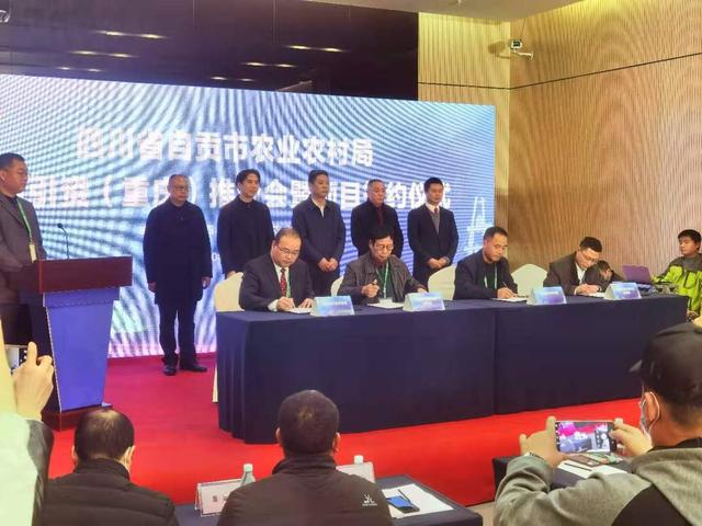 交易会上,自贡还成功举办农业农村招商引资推介会暨项目签约仪式,现场签约渝自农业农村区域合作、国家级生猪大数据中心自贡中心等合作项目4个,正邦集团沿滩年出栏5万头生猪、京东荣县数字农业等产业项目2个。