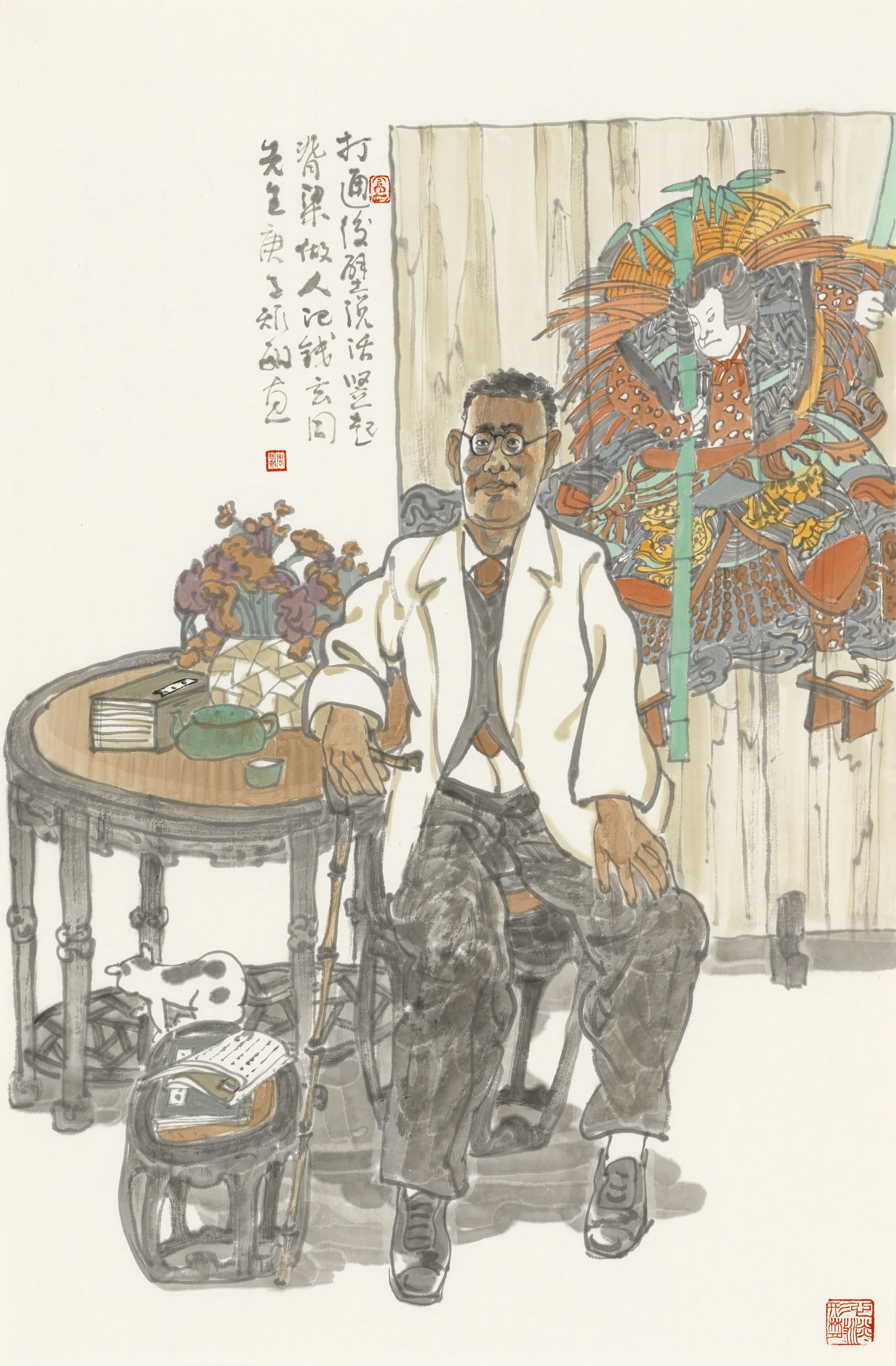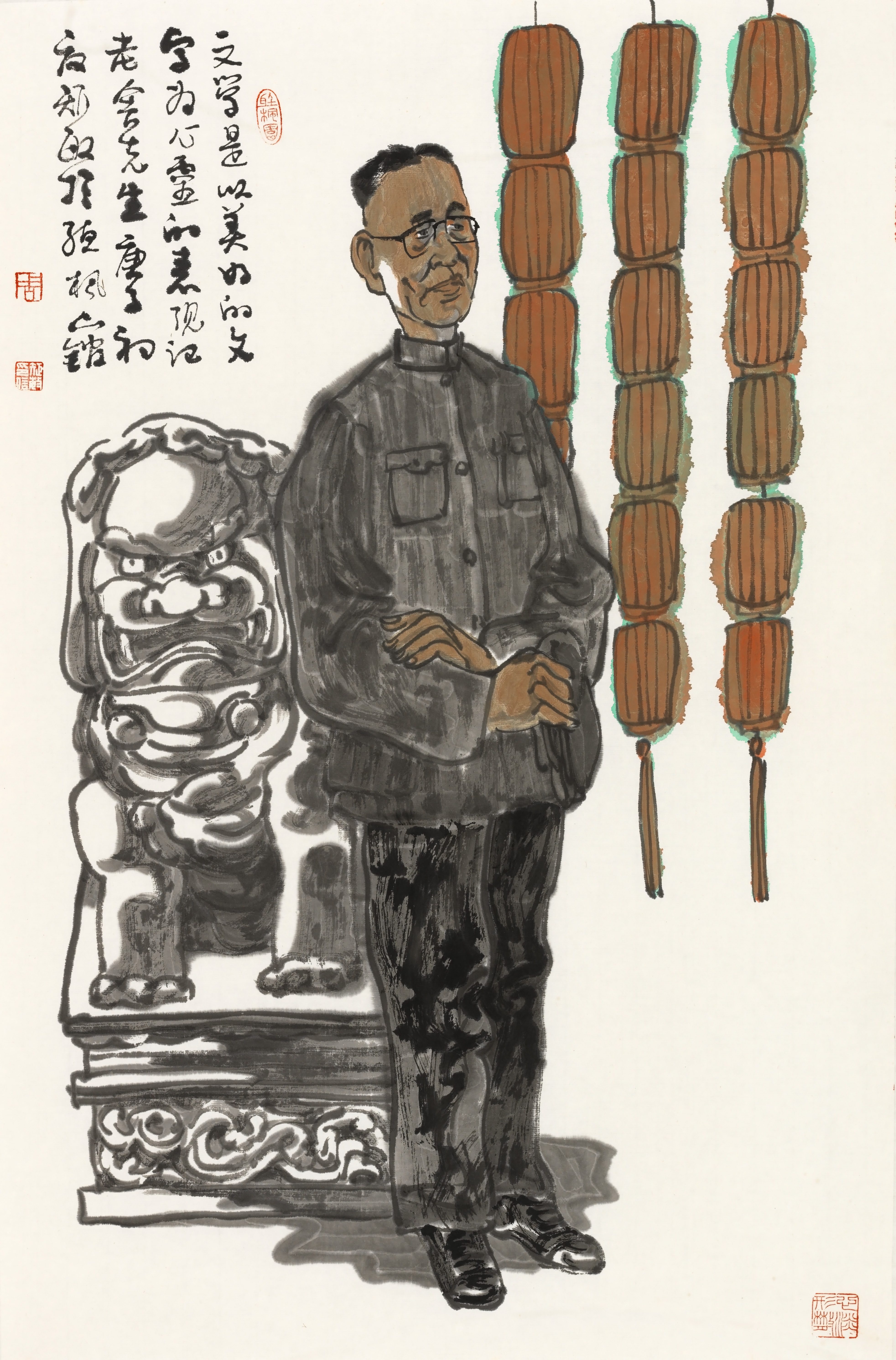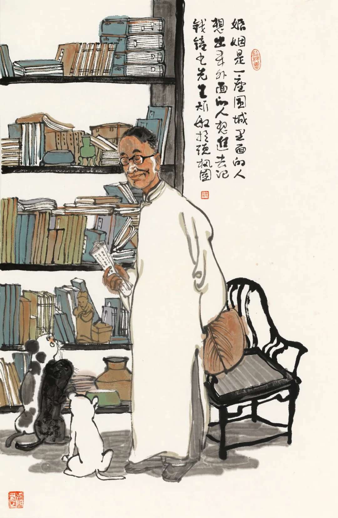 手捻“山羊胡”拄着拐杖的辜鸿铭、留着“一字胡”正襟危坐的鲁迅、背着手一派乐天知命模样的季羡林、一袭白色长衫与猫对望的钱钟书……新吴门画派代表人物周矩敏先生历时4年创作,用画笔刻画了150位“先生”形象,像颗颗珍珠串起中国近现代文学史的文化记忆。画中之人,只有两种姿态,或坐或站,在周矩敏看来,“站有站相,坐有坐相”,是中国知识分子的模样。