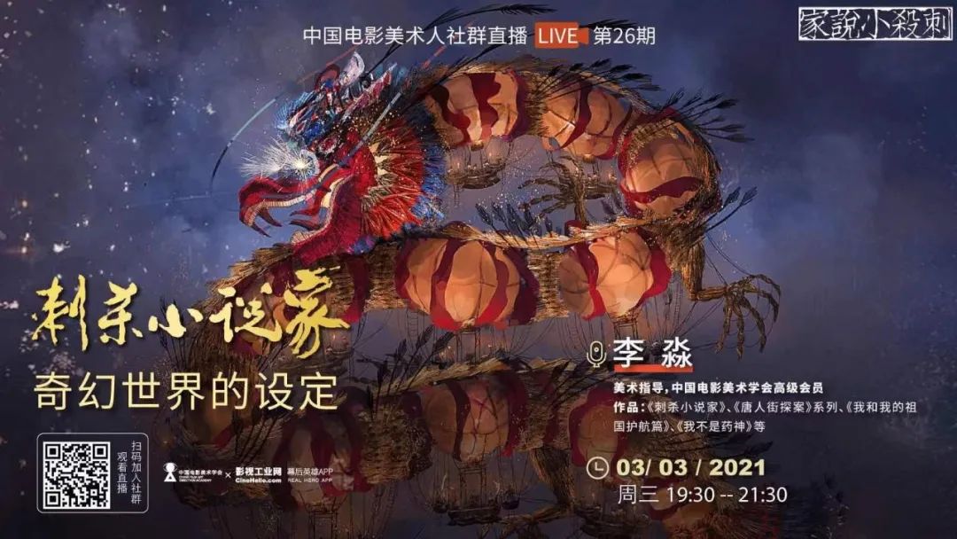 美术指导李淼于3月3日晚19:30在”中国电影美术人社群”直播开讲如何设定《刺杀小说家》的奇幻世界。