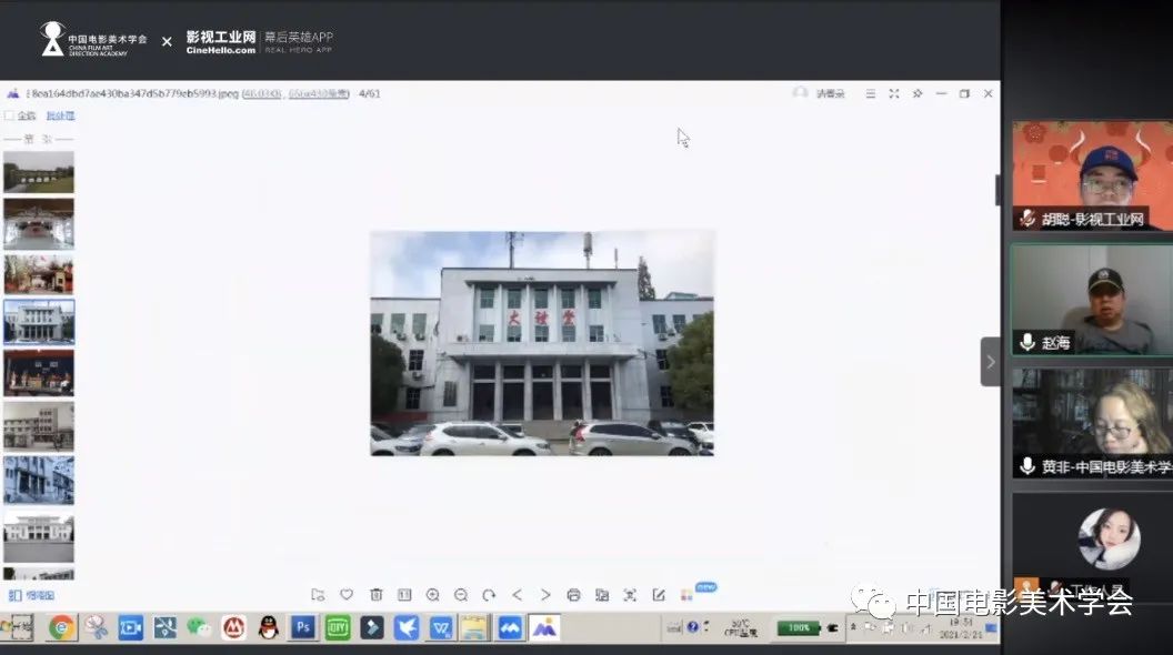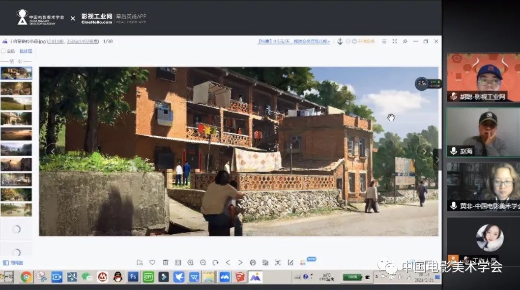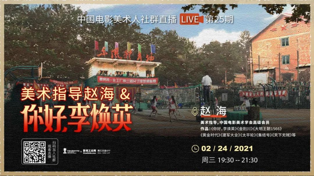 《你好,李焕英》美术指导赵海在“中国电影美术人社群”直播分享了电影《你好,李焕英》的美术设计,中国电影美术学会协同创新中心的黄非老师主持。赵海老师细细地讲述了他从接到剧本、如何与导演沟通,如何搜集甄选资料、设计方案到创作,以及如何一个个地解决创作中遇到的问题、最终呈现最好的结果给电影。"影片的基调"、"真情实感"、"美术指导的职业性"等方面深入探讨电影美术人在电影工作中的作用以及重要性。