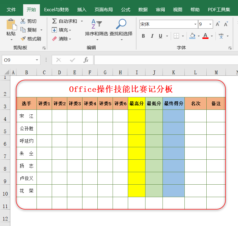 01.制作记分板:如下图,美化表格部分可以关注【Excel与财务】主页教程有讲解。