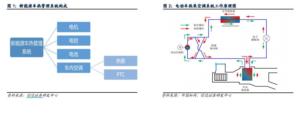 据了解,汽车热管理主要分为电机、电控、电池的热管理以及车内空调系统。而热泵空调,正是车内空调系统的一种。目前,燃油车制热主要来自发动机工作时的散热,而电动汽车本身无法利用余热循环,只能通过热泵、PTC进行制热。