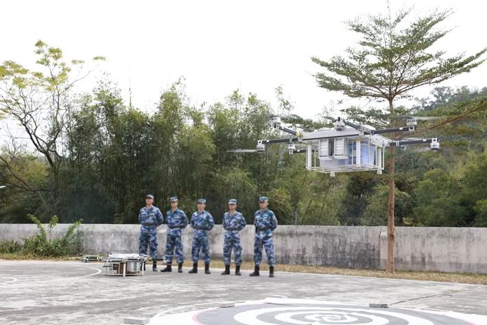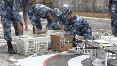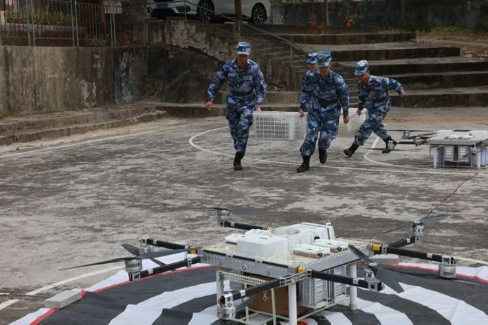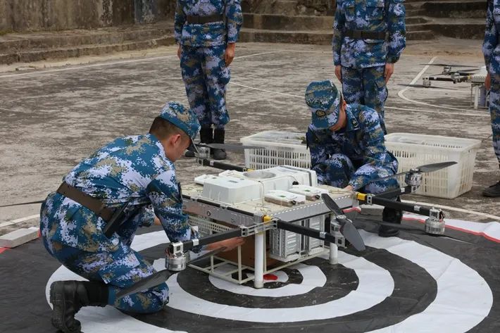 “我部驻地附近爆发山洪,道路遭泥石流毁坏,急需食物、药品等给养物资,请求支援!”随着指挥员下达指令,4架无人机满载30余公斤给养物资,一头扎进山间的浓雾,迅速飞向指定地域。这是南部战区海军某观通旅组织无人机机组编队实投实飞演练,实现向高山海岛部队投送物资的新方式。