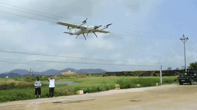 满载物资的无人机准备起飞