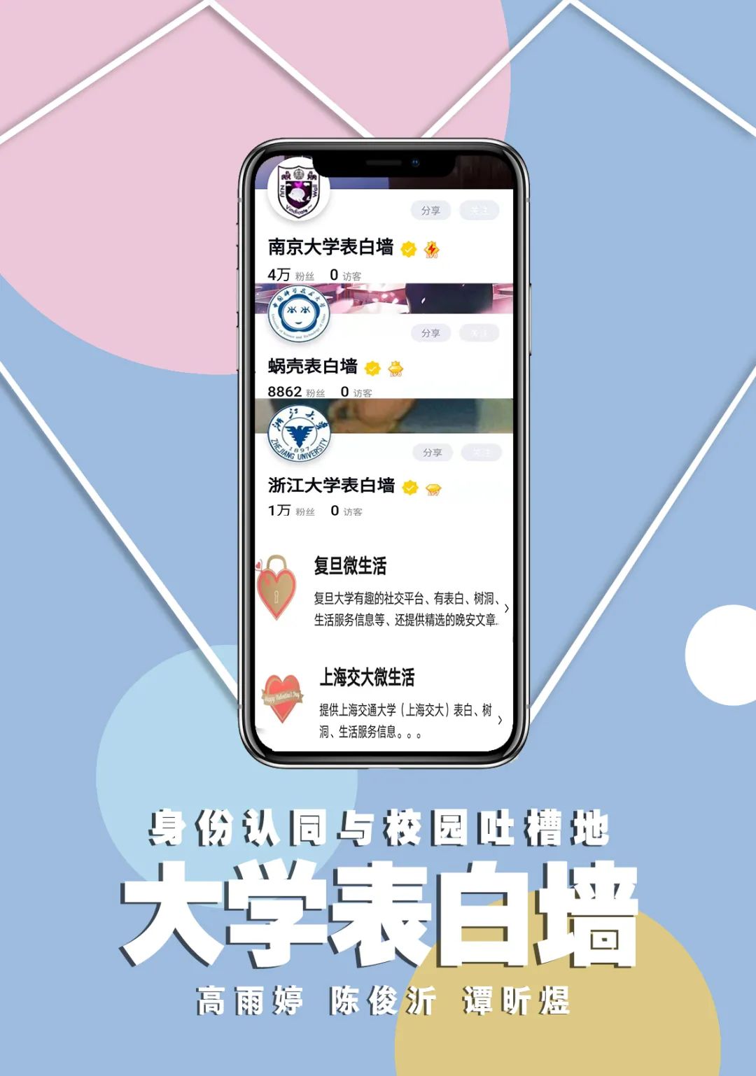 本文对华东五所高校(复旦大学、南京大学、上海交通大学、浙江大学和中国科学技术大学)的表白墙内容进行分析,通过问卷调查,探究大学生如何使用表白墙,以及表白墙如何发挥其功能。