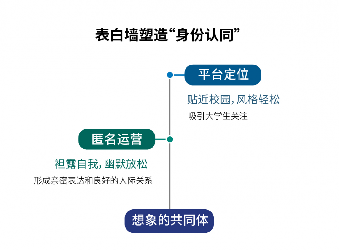 在相同的文化背景、母校情结下,大学生通过匿名吐露心声,通过亲密表达彼此认同并链接关系,建构出虚拟社区的想象共同体。