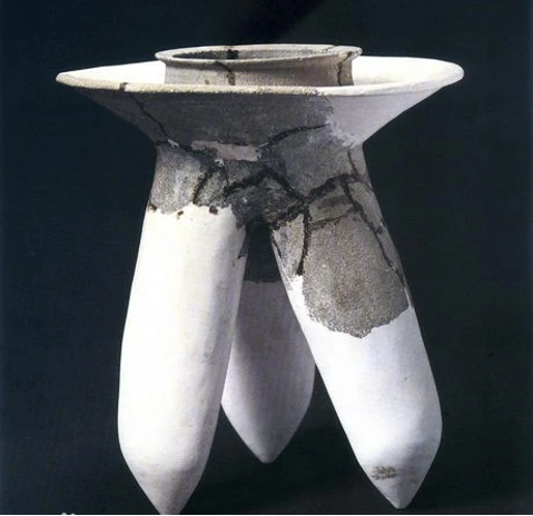 陶三足炊器,三足成鼎立之势,足下可生火加温。袋状足中空,与口部相通,容水量很大,宽大的盘面类似今天四川地区泡菜坛的坛沿,可盛水或置物。