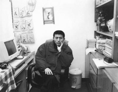 毕飞宇的照片,让人感慨的是他坐在六平方米书房中的照片,一边书桌上是胖胖的老式电脑,对面是书橱,中间只有一把椅子的空间了。他的这幢房子仅有四十三平方米,如今看这照片,房间里每个物件都带着20世纪90年代初特有的印记,拥挤中有一种温馨。那时毕飞宇在报社做记者,每天上班要骑八十分钟的自行车。那也是他文学激情燃烧的时代,每天回家经常写作到深夜两三点钟,书房再小,也是他的文学宫殿。