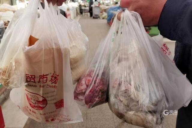 记者注意到,虽然来农贸市场买菜的市民中,很多中老年人自己拉着购物小推车,但小推车里装的菜也都是各自用小塑料袋包装着,有些年轻人则是满手提着各种塑料袋。“晚上去父母家聚餐,买了10多种菜,其实不想用这么多塑料袋,但装的都是食品,还是单独包装卫生一些。”市民齐先生从团岛市场提了10多个塑料袋的食材出来,记者注意到,他手上的塑料袋“五花八门”,有的塑料袋上标着可降解,也有的是纯透明的薄塑料袋,还有无纺布的购物袋。
