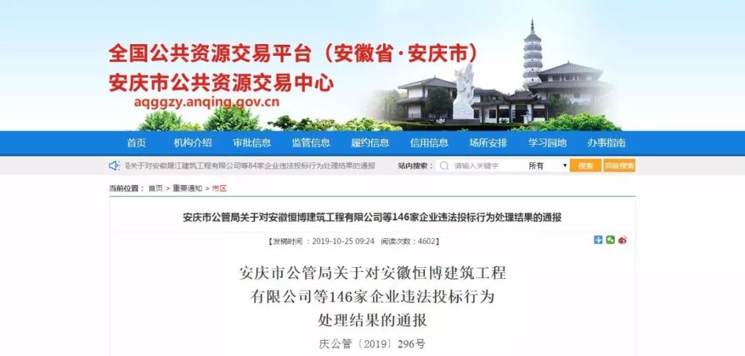 安徽省铜陵市公共资源交易中心一次性发布“36份行政处罚决定书”。