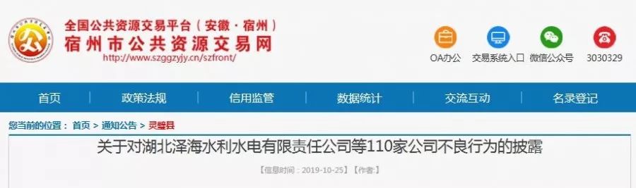 安徽省宿州市公共资源交易网披露一起串通投标案。根据县公安局案件侦办反馈,110家公司在灵璧县2017年高标准农田建设项目(第一批次)等项目中存在串通投标行为。