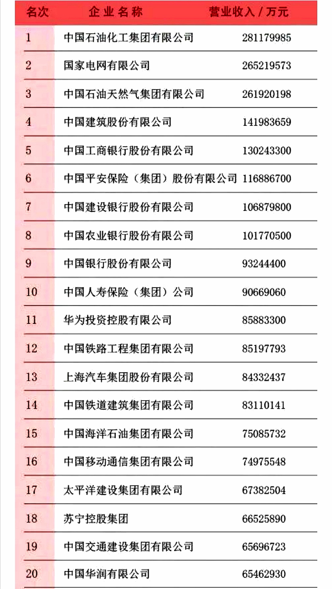 那么,中国排名第一的央企是谁?如果从不一样的角度出发,得到的答案自然不同,如果说从企业营收的角度来讲,中石化是排名第一的央企,因为中石化的营收很高,近些年的营收规模都保持在2万亿以上,其他企业自然是无法匹敌。