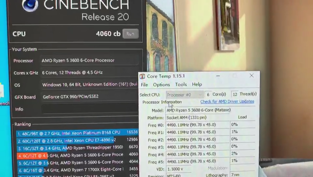 我在小雕B550M AORUS PRO-P上使用1.39V电压将AMD锐龙5 3600超到了全核心4.5 GHz,这时的Cinebench R20得分达到了4060分,提升还是很明显的。此外,在超频过程中我觉得小雕B550M AORUS PRO-P的BIOS设置相当方便,没有繁琐的选项,供电和散热做得也不错,可以称得上是千元以下最好超的B550主板了。